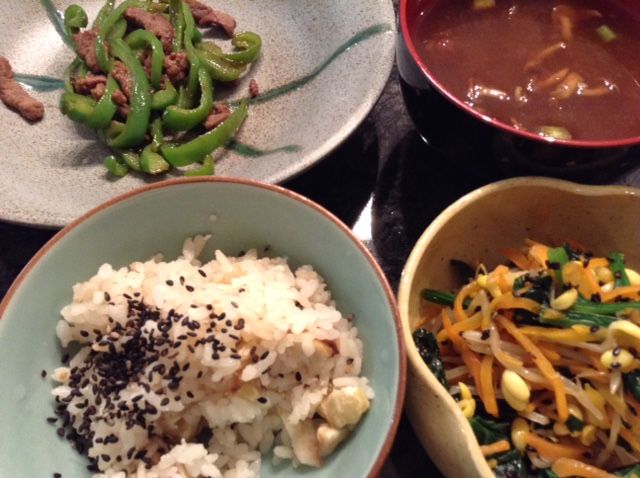 ピーマンと牛肉の炒め・なめこ汁赤だし仕立て